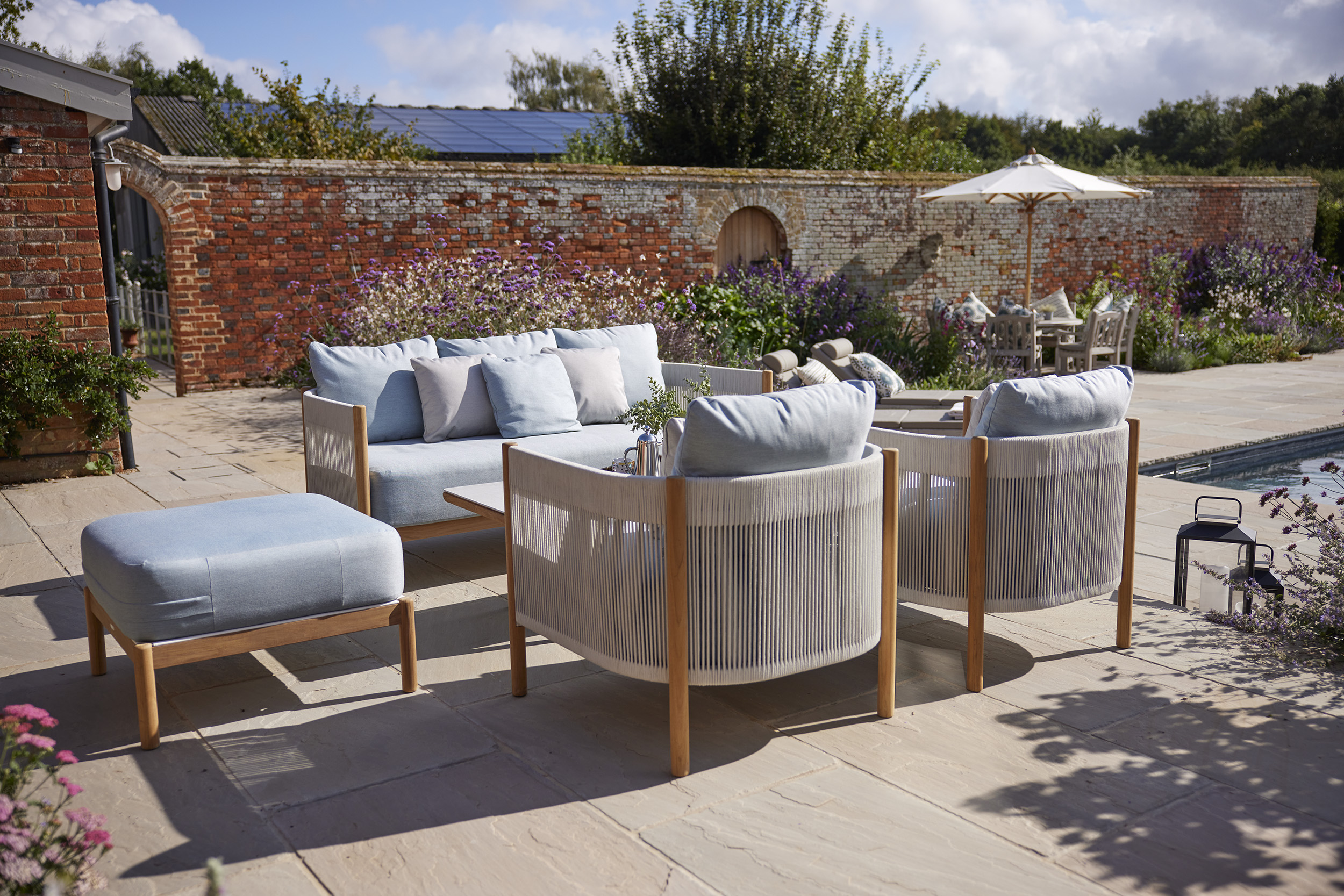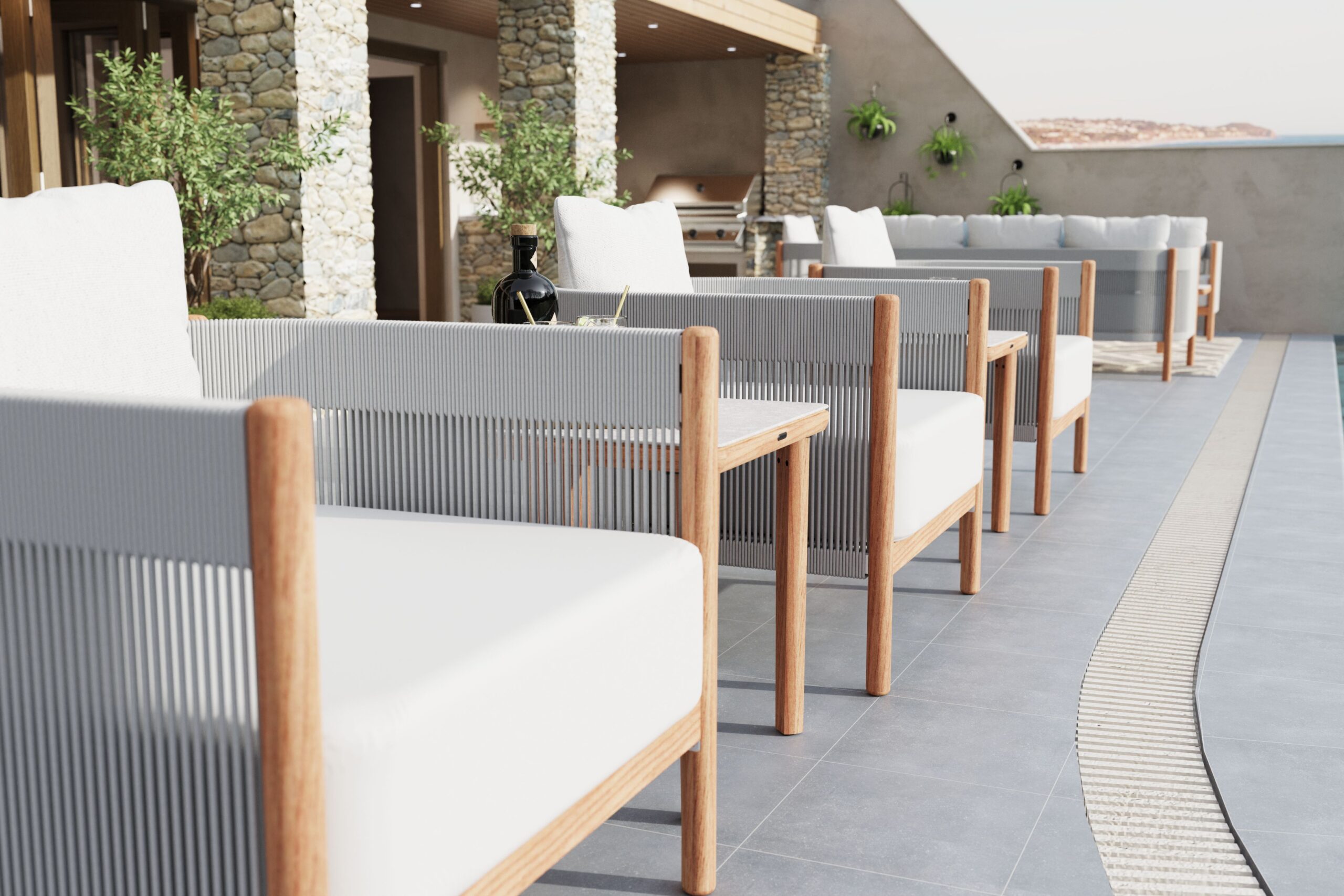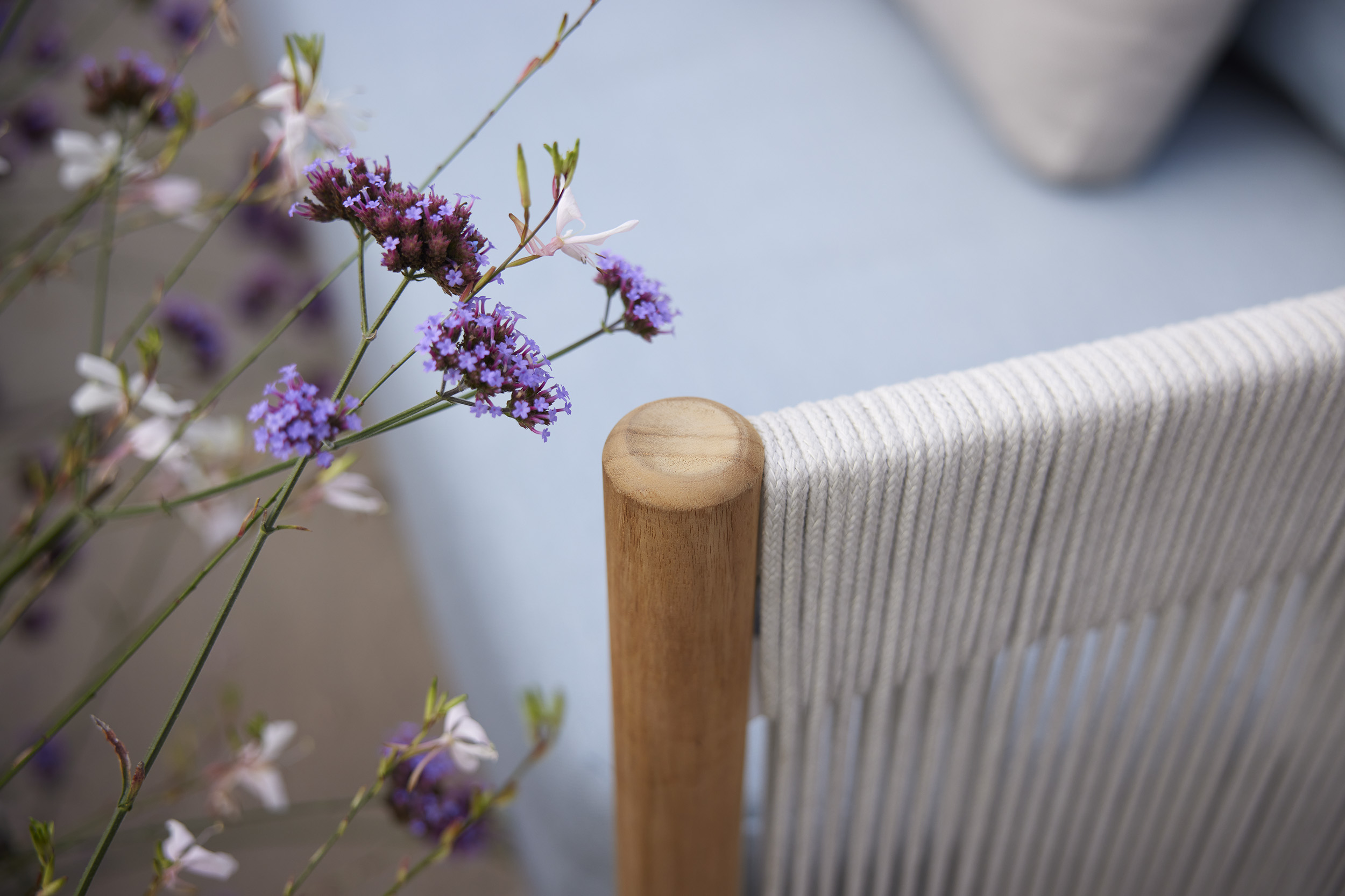 Cocoon is een prachtige eigentijdse collectie van het internationale designhuis Astheimer. Gebogen ruggen, teakhouten poten en zorgvuldig met de hand opgewonden krijtkleurig touw maken elk stuk vanuit elke hoek prachtig.